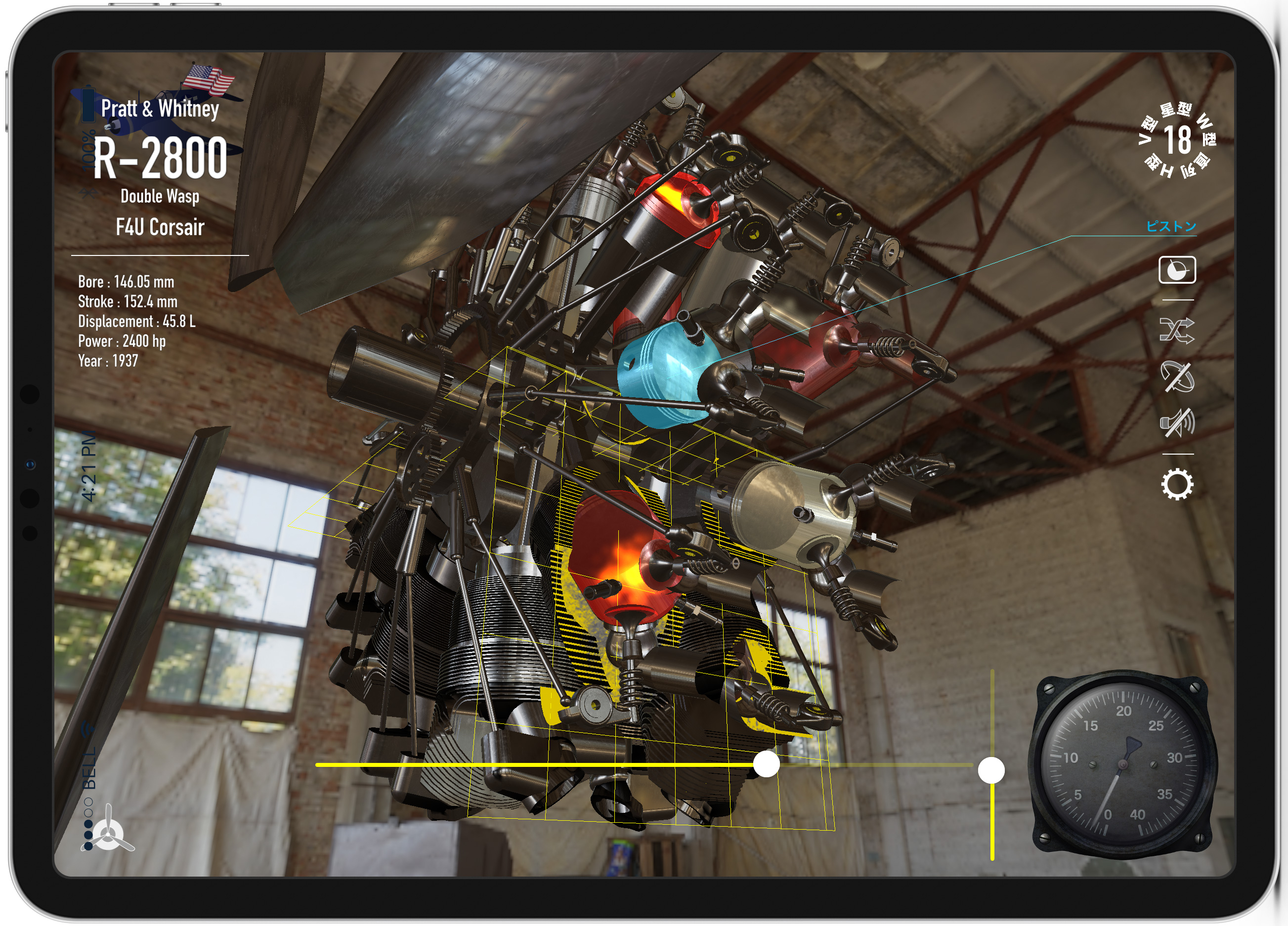このアプリは、一般公開されているエンジンスペックから、学習する上での再現をしており、実際の機械の寸法や意匠を忠実に模したものではありません。