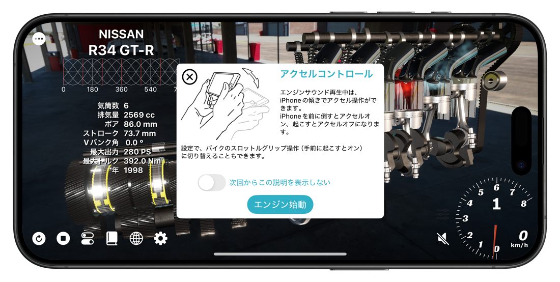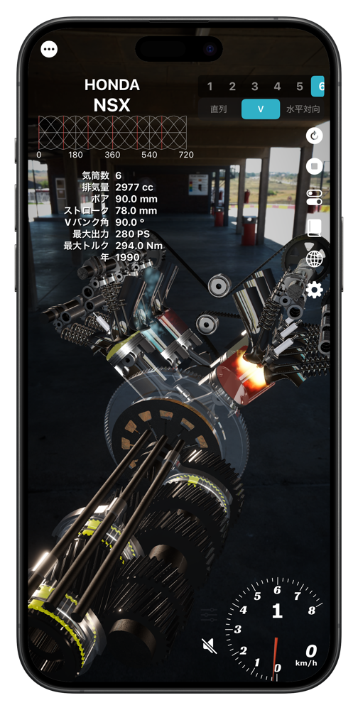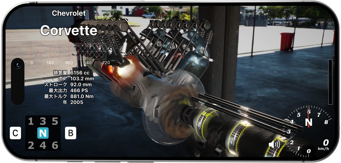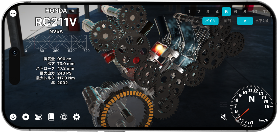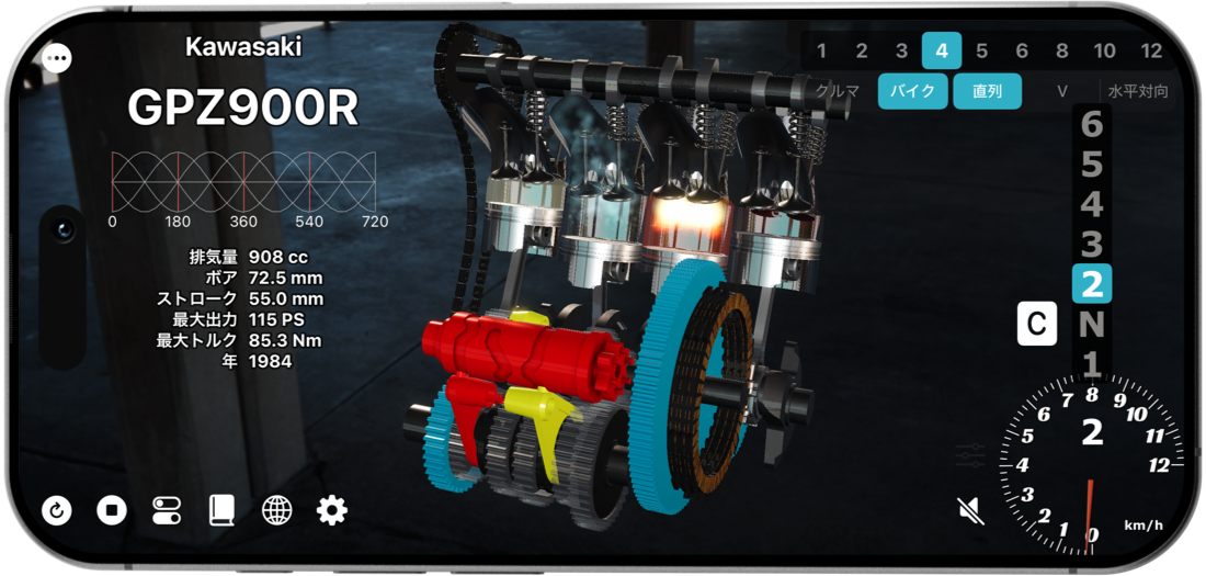 このアプリは、一般公開されているエンジンスペックから、学習する上での再現をしており、実際の機械の寸法や意匠を忠実に模したものではありません。