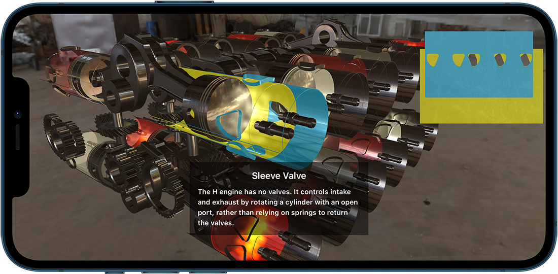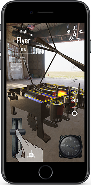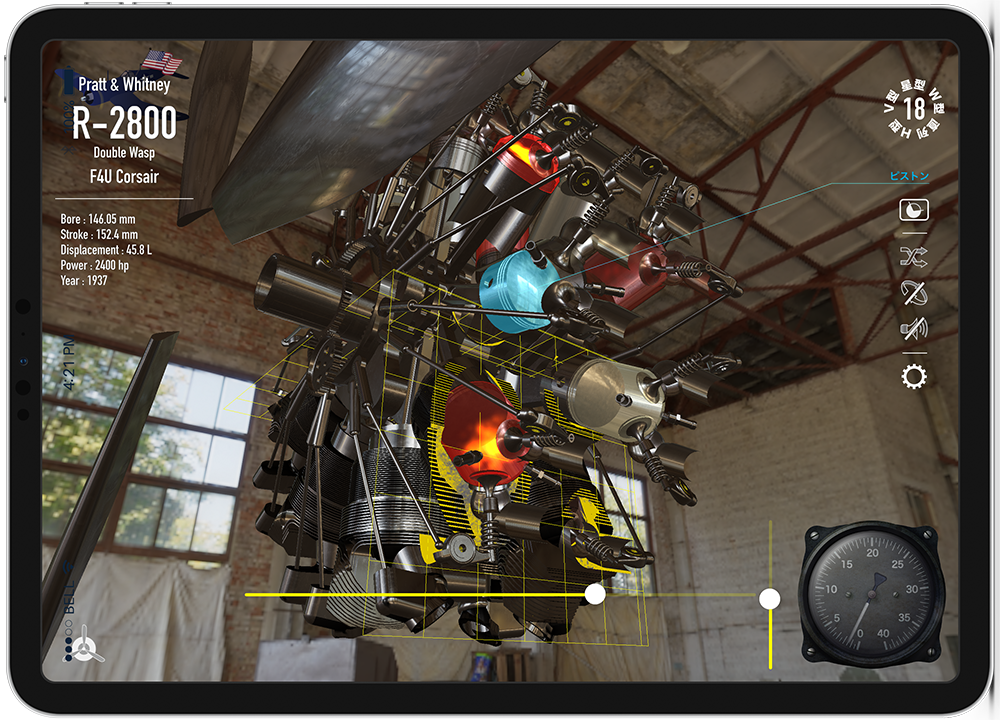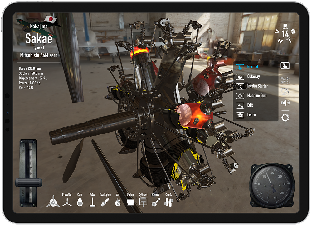 You can operate a wide range of four-stroke engines from the Wright brothers' inline 4 cylinders to the radial, inverted V, W, and H-type on your iPad/iPhone.