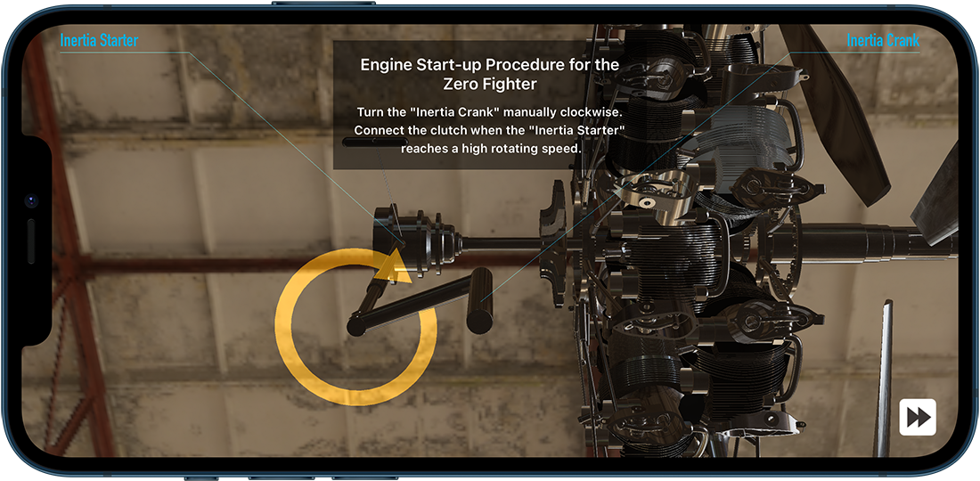 The CG animated engine rotates at one tenth of the actual speed to enable users to learn the structure and to enjoy the visual.