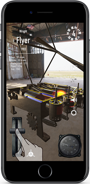 ライト兄弟の直列4気筒から、航空機特有な星型、倒立V型、W型、H型まで様々な4ストロークエンジンをiPad/iPhone上で動作させることができます。